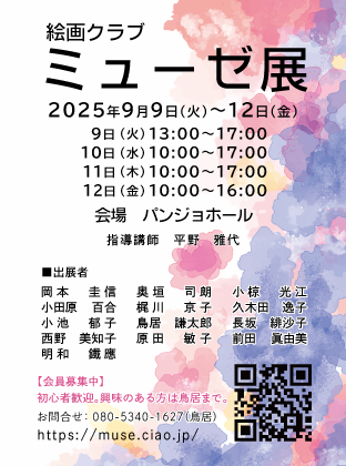 パンジョホールにて絵画クラブミューゼ展を開催いたします。